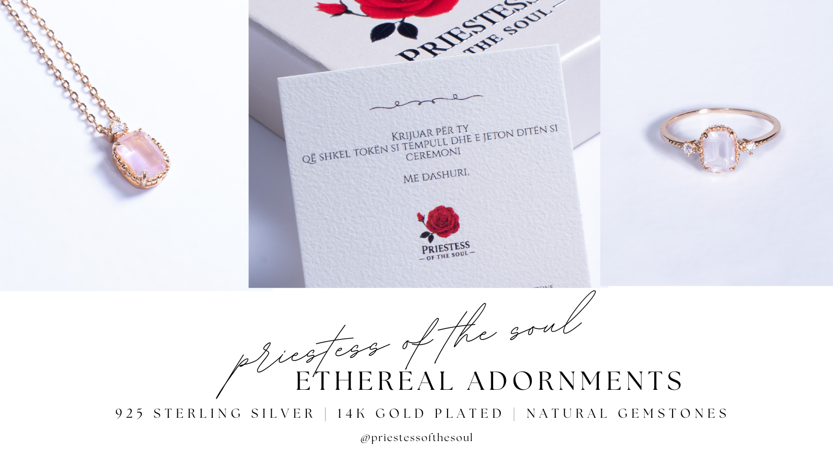 Janë amuleta shpirti, krijuar për t’u mbajtur me zemër - për të të kujtuar fuqinë tënde si Perëndeshë apo Grua e Shenjtë që ecën ndërmjet botëve.Ky koleksion përqafon estetikën e kohëve mesjetare dhe botën e fantazisë, duke i dhënë zë një magjie të harruar, që tani është gati të zgjohet - përmes teje.