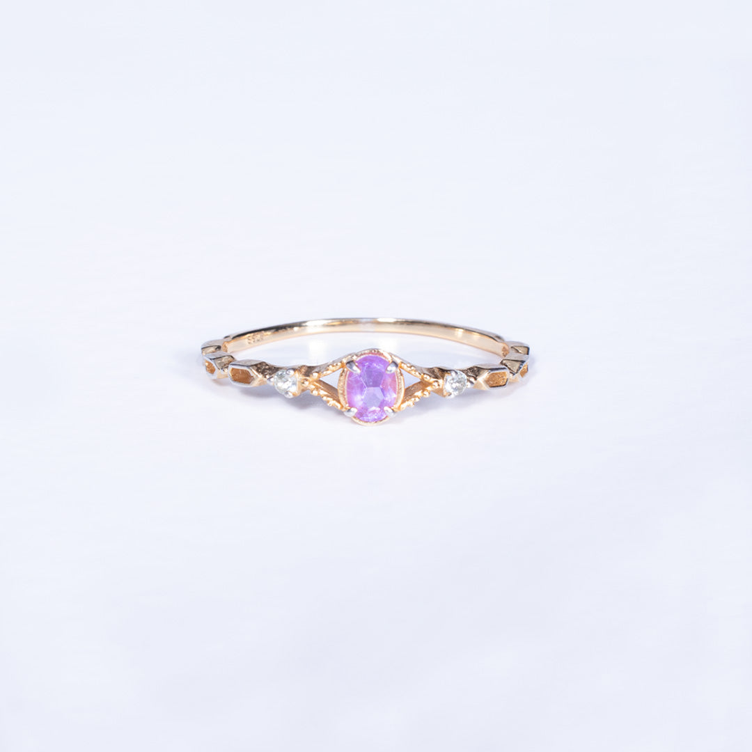 Kjo unazë delikate mishëron energjinë e një lulëzimi të shenjtë, një kujtesë që bukuria më e thellë lind nga shpirti që guxon të hapet. E punuar me argjend 925 Sterling e veshur me ar 18K, mbart një gur ametist rozë të butë, që ndriçon si petalet e para të agimit, duke e rrethuar me dritë të pastër dhe harmoni.