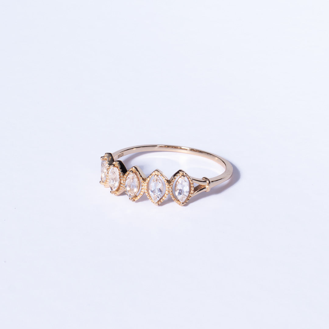 Pesë kristalet e saj në formë marquise përfaqësojnë pesë yje, një kujtesë se drita jote e brendshme ndriçon edhe në ditët më të errëta.